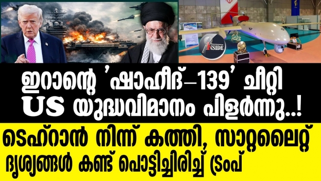 ഇറാന്റെ 'ഷാഹീദ്-139' ചീറ്റി US യുദ്ധവിമാനം പിളർന്നു..! ടെഹ്റാൻ നിന്ന് കത്തി, സാറ്റലൈറ്റ് ദൃശ്യങ്ങൾ കണ്ട് പൊട്ടിച്ചിരിച്ച് ട്രംപ്