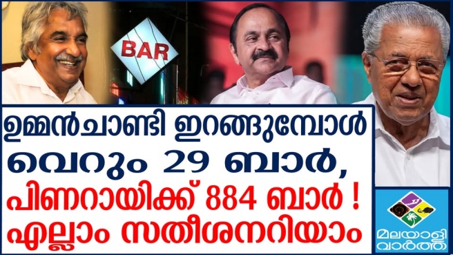 ഉമ്മൻചാണ്ടി ഇറങ്ങുമ്പോൾ 29 ബാർ, ഒൻപതര കൊല്ലത്തിനുശേഷം 884ബാർ..നിലപാടിൽനിന്ന് മലക്കം മറിഞ്ഞാണ് ഇപ്പോൾ ബാറുകളുടെ സമയം രണ്ടുമണിക്കൂർ കൂട്ടിയത്..