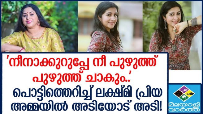 ഒരുപാട് പേരുടെ ശാപം ഉണ്ടാകുമെന്നും, ഗതികിട്ടാതെ അലഞ്ഞേ മരിക്കൂവെന്നും ലക്ഷ്മിപ്രിയ. പ്രോഗ്രാം കോര്ഡിനേറ്റര്മാരില് ഒരാളു കൂടിയായിരുന്നു ലക്ഷ്മി പ്രിയ. മറ്റു ജൂനിയര് നടിമാരെ സ്റ്റേജില് പ്രോഗ്രാം അവതരിപ്പിക്കാന് കയറ്റാത്തതും, കാറ്റിംഗ് കാരോട് മോശമായി പെരുമാറിയതുമെല്ലാം നീനാക്കുറുപ്പിനെ കണക്കിനു ശകാരിക്കാന് കാരണമായെന്നാണ് സൂചന. കമ്മിറ്റിയില് ലക്ഷ്മിപ്രിയ പൊട്ടിത്തെറിക്കുന്ന വോയിസ് ലീക്കായിരിക്കുകയാണ്. നീനാക്കുറുപ്പ് പ്രോഗ്രാം നടന്ന സ്ഥലത്ത് പട്ടി ഷോയാണ് നടത്തിയതെന്നും ലക്ഷ്മി പ്രിയ പറയുന്നു.