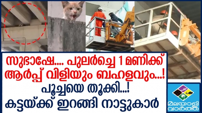 മെട്രോ പില്ലറിലെ ഇടുങ്ങിയ വിടവിൽ രണ്ടാഴ്ചയായി ഭക്ഷണവും വെള്ളവുമില്ലാതെ കുടുങ്ങിക്കിടന്ന പൂച്ചയെ രക്ഷപ്പെടുത്തിയത് അതിസാഹസികമായി. കലൂർ ജവാഹർലാൽ നെഹ്റു സ്റ്റേഡിയം മെട്രോ സ്റ്റേഷന് സമീപത്തെ 556-ാം നമ്പർ പില്ലറിൽ കുടുങ്ങിയ പൂച്ചയെ ഞായറാഴ്ച പുലർച്ചെ ഒന്നരയോടെയാണ് താഴെയെത്തിച്ചത്. മഞ്ഞുമ്മൽ ബോയ്സ് സിനിമയിലെ കഥാപാത്രത്തെ ഓർമ്മിപ്പിച്ച് ഓട്ടോ ഡ്രൈവർമാർ 'സുഭാഷ്' എന്ന് പേരിട്ട ഈ പൂച്ചയെ രക്ഷിക്കാൻ ഒരു നഗരം മുഴുവൻ ഉറക്കമൊഴിച്ച് കാത്തിരുന്നു.
