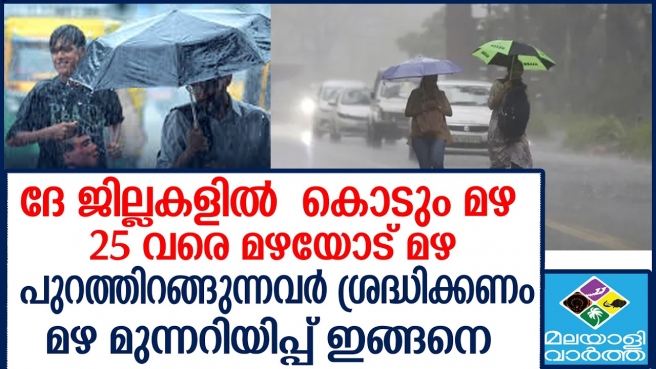 ദേ ജില്ലകളിൽ കൊടും മഴ 25 വരെ മഴയോട് മഴ പുറത്തിറങ്ങുന്നവർ ശ്രദ്ധിക്കണം മഴ മുന്നറിയിപ്പ് ഇങ്ങനെ