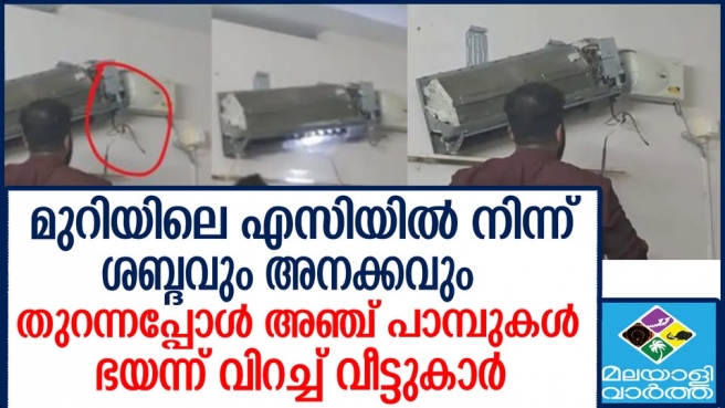 എയർ കണ്ടീഷനുള്ളിൽ പാമ്പ്.. അഞ്ചോളം പാമ്പുകളെ പിടികൂടി...കൊബേറി അഥവാ വില്ലൂന്നി എന്ന വിഭാഗത്തിലെ വിഷമില്ലാത്ത പാമ്പ് ആണിത്..ഒന്നര മണിക്കൂർ പരിശ്രമിച്ച് 4 എണ്ണത്തിനെ പിടി കൂടി..