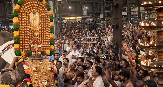 ഉത്സവത്തിന്റെ ഒമ്പതാം ദിവസമായ പള്ളിവേട്ട ദിനത്തില് ഗുരുവായൂരപ്പന് ശ്രീലകം വിട്ട് ഗ്രാമപ്രദക്ഷിണത്തിനായി പുറത്തേക്കെഴുന്നള്ളി