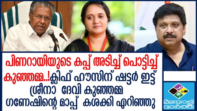പിണറായിയുടെ കപ്പ് അടിച്ച് പൊട്ടിച്ച് കുഞ്ഞമ്മ..!ക്ലിഫ് ഹൗസിന് ഷട്ടർ ഇട്ട് ശ്രീനാ ദേവി കുഞ്ഞമ്മ ഗണേഷിന്റെ മാപ്പ് കശക്കി എറിഞ്ഞു