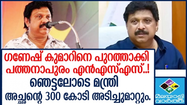 കെ.ബി.ഗണേഷ് കുമാർ പ്രസിഡന്റായ പത്തനാപുരം എൻഎസ്എസ് താലൂക്ക് യൂണിയൻ കമ്മിറ്റി പിരിച്ചുവിട്ടു..ഗണേഷ് കുമാറിന്റേത് ഏകാധിപത്യ പ്രവണത..