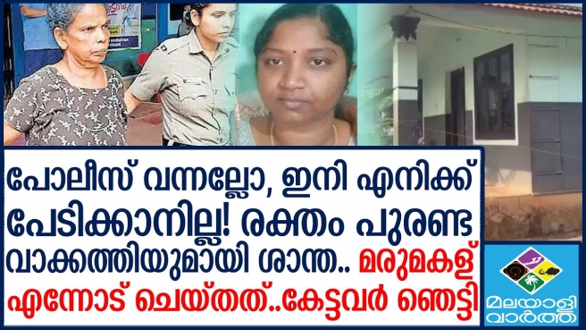 മരുമകളെ കൊന്നു, ഇനി എനിക്ക് പേടിയില്ല; പൊലീസ് വന്നല്ലോ" - നിലമ്പൂർ കരുളായിലെ രജില കൊലക്കേസിൽ അറസ്റ്റിലായ അമ്മായിയമ്മ ശാന്ത പൊലീസിനോട് വെളിപ്പെടുത്തിയത് താൻ കാത്തുസൂക്ഷിച്ച കടുത്ത പകയെക്കുറിച്ച്. ഏറെ നാളായി പുകഞ്ഞുകൊണ്ടിരുന്ന കുടുംബകലഹമാണ് ഒടുവിൽ രക്തച്ചൊരിച്ചിലിൽ അവസാനിക്കുന്നത്. ചായ ഉണ്ടാക്കാൻ വെച്ച വെള്ളം മരുമകൾ എടുത്തു കളഞ്ഞതാണ് പെട്ടെന്നുള്ള പ്രകോപനമെന്ന് ശാന്ത അവകാശപ്പെടുമ്പോഴും,