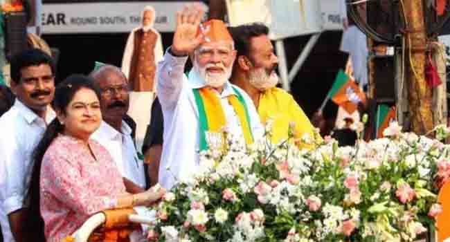 ഇന്നലെ ഉച്ചയ്ക്ക് പാലക്കാട് കോട്ടമൈതാനത്ത് സംഘടിപ്പിച്ച എൻ.ഡി.എ തിരഞ്ഞെടുപ്പ് പൊതുസമ്മേളനം ഉദ്ഘാടനം ചെയ്യുകയായിരുന്നു പ്രധാനമന്ത്രി. പതിറ്റാണ്ടുകളായി കേരളം ഇടതു- വലതു പാർട്ടികളുടെ വഞ്ചനയിൽപെട്ട് കിടക്കുകയാണ്. എൽ.ഡി.എഫിന്റെയും യു.ഡി.എഫിന്റെയും നയങ്ങൾ വോട്ടുബാങ്ക് രാഷ്ട്രീയമാണ്.