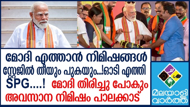 മോദി എത്താൻ നിമിഷങ്ങൾ സ്റ്റേജിൽ തീയും പുകയും...!ഓടി എത്തി SPG....! മോദി തിരിച്ചു പോകും അവസാന നിമിഷം പാലക്കാട്