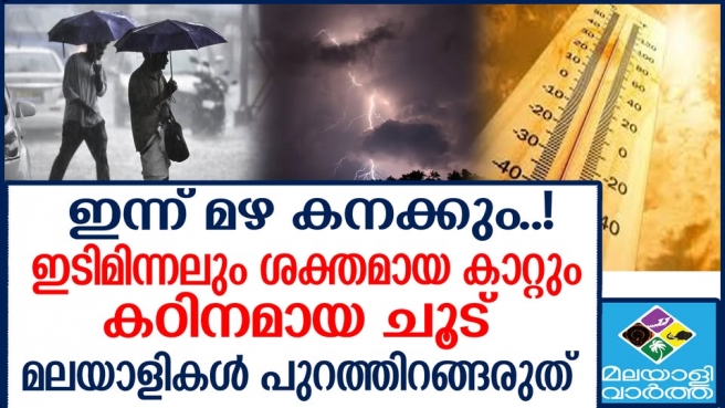 വേനൽ മഴ ജില്ലകളെ കുളിരണിയിക്കാൻ എത്തുന്നു .സംസ്ഥാനത്ത് ഒറ്റപ്പെട്ടയിടങ്ങളിൽ മഴ തുടരുമെന്ന് കേന്ദ്ര കാലാവസ്ഥ വകുപ്പിൻ്റെ മുന്നറിയിപ്പ്. ഒമ്പത് ജില്ലകളിലും ഇന്ന് മഴ ലഭിക്കുമെന്നാണ് വിലയിരുത്തൽ. ഈ ജില്ലകളിൽ ഇന്ന് ഗ്രീൻ അലർട്ടും പ്രഖ്യാപിച്ചിട്ടുണ്ട്. ഒറ്റപ്പെട്ടയിടങ്ങളിൽ ഇടിമിന്നലോടു കൂടിയ മഴയ്ക്കും ശക്തമായ കാറ്റിനും സാധ്യതയുണ്ടെന്നും കേന്ദ്ര കാലാവസ്ഥ വകുപ്പ് അറിയിച്ചു.കേരള - കർണാടക - ലക്ഷദ്വീപ് തീരങ്ങളിൽ ഇന്ന് മത്സ്യബന്ധനത്തിന് തടസമില്ലെന്ന് കേന്ദ്ര കാലാവസ്ഥ വകുപ്പ് അറിയിച്ചു.ഇടിമിന്നൽ ജാഗ്രതാ നിർദേശം..