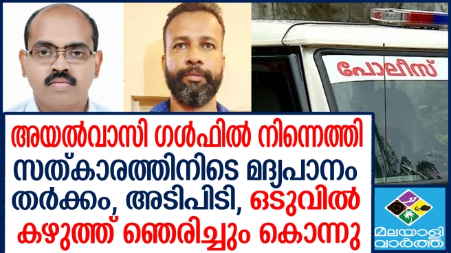 ഗൾഫിൽനിന്നെത്തിയയാളെ സത്കാരം നടത്തുന്നതിനിടെ.. സുഹൃത്ത് അടിച്ചും കഴുത്ത് ഞെരിച്ചും കൊന്നു... പട്ടികകൊണ്ട് അടിക്കുകയും കഴുത്ത് ഞെരിക്കുകയും ചെയ്തു..