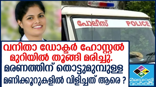 വനിതാ ഡോക്ടറെ ഹോസ്റ്റല് മുറിയില് മരിച്ച നിലയില് കണ്ടെത്തി.. ഞെട്ടലിലാണ് സഹപ്രവര്ത്തകരും നാട്ടുകാരും..ഹോസ്റ്റല് മുറി അകത്തുനിന്ന് കുറ്റിയിട്ട നിലയിലായിരുന്നു..