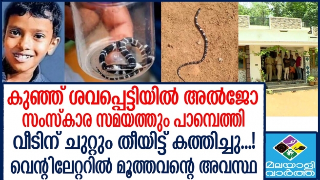പാമ്പുകടിയേറ്റ പത്തുവയസ്സുകാരൻ മരിച്ച സംഭവം; മൂത്ത കുട്ടിയുടെ നിലയിൽ പുരോഗതി; പാമ്പുകളെ ഓടിക്കാൻ വനം വകുപ്പ് ഉദ്യോഗസ്ഥർ ഇന്നലെ വീടിന് ചുറ്റും തീയിട്ടു;അൽജോയുടെ മൃതദേഹം വീട്ടിൽ പൊതുദർശനത്തിനു വച്ച സമയത്ത് മറ്റൊരു പാമ്പിനെക്കൂടി കണ്ടെത്തി