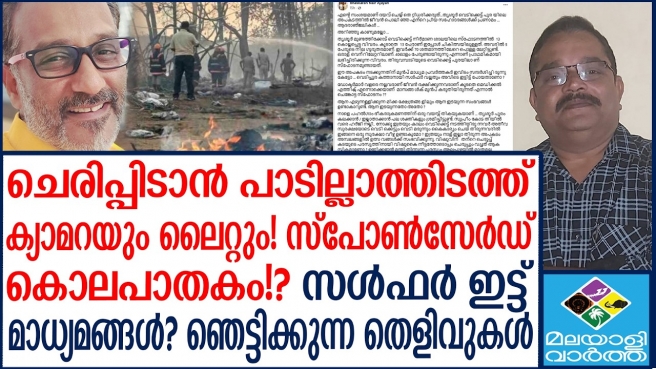 അപകടത്തിന് തൊട്ടുമുമ്പ് മാധ്യമങ്ങൾ അവിടെ സന്ദർശിച്ചത് ദുരൂഹമാണെന്നും, സൾഫർ ഉപയോഗിച്ചുള്ള അട്ടിമറി സാധ്യത അന്വേഷിക്കണമെന്നും ഭാസ്കരൻ നായർ അജയൻ ആവശ്യപ്പെടുന്നു. പഹൽഗാം ഭീകരാക്രമണത്തിന്റെ വാർഷിക ദിനത്തിൽ തന്നെ ഇത്തരമൊരു ദുരന്തം നടന്നതിൽ NIA അന്വേഷണം വേണമെന്ന ആവശ്യവും ശക്തമാവുകയാണ്. കൂടുതൽ വിവരങ്ങളിലേക്ക്...