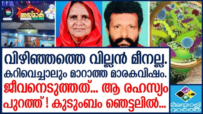 വിഴിഞ്ഞത്തെ ഹോട്ടൽ ഭക്ഷണത്തിന് പിന്നാലെ ഉണ്ടായ ഇരട്ട മരണങ്ങളിൽ കേരളത്തെ നടുക്കുന്ന വഴിത്തിരിവ്. മരിച്ചത് ഭക്ഷ്യവിഷബാധ മൂലമല്ലെന്നും, വില്ലൻ മീനിനുള്ളിൽ ഒളിഞ്ഞിരുന്ന മാരകമായ 'മറൈൻ ടോക്സിൻ' ആണെന്നും ഭക്ഷ്യസുരക്ഷാ വകുപ്പിന്റെ അന്വേഷണ റിപ്പോർട്ട്. പാകം ചെയ്താലും നശിക്കാത്ത ഈ കൊടുംവിഷം എങ്ങനെയാണ് ആ ജീവനുകളെടുത്തത്?