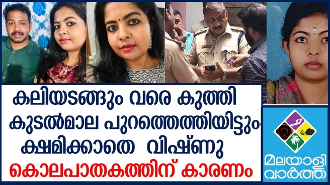 പത്ത് കൊല്ലം ഒരുമിച്ച് ജീവിച്ചിട്ടും അവനവളെ മനസ്സിലായില്ല. ഒരു അപ്രതീക്ഷിത നിമിഷത്തിലെ ദേഷ്യം തീർക്കാൻ വിഷ്ണു കണ്ടെത്തിയ മാർഗം കൊലപാതകം. കലിപ്പ് തീരും വരെ അവൻ അവളെ കുത്തി. ചോര പുറത്ത് വന്നിട്ടും അവളുടെ ശബ്ദം കാതിലേക്ക് തുളച്ച് കയറിയിട്ടും വിഷ്ണു അടങ്ങിയില്ല. കുടുംബ വഴക്കിനെ തുടർന്ന് അതിദാരുണ കൊലപാതകമാണ് തലസ്ഥാനത്ത് അരങ്ങേറിയത്. തിരുവനന്തപുരം നെയ്യാറ്റിൻകരയിൽ ഭർത്താവ് ഭാര്യയെ കുത്തി കൊലപ്പെടുത്തി.
