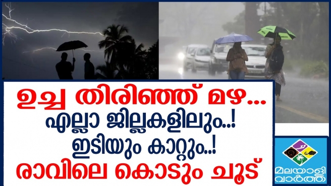 ഉച്ച തിരിഞ്ഞ് മഴ... എല്ലാ ജില്ലകളിലും..! ഇടിയും കാറ്റും..! രാവിലെ കൊടും ചൂട്