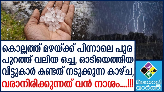 വേനൽ മഴയിലും ഇടി മിന്നലിനും ആലിപ്പഴ വീഴ്ച ഉണ്ടായി. കൊല്ലത്താണ് സംഭവം. മണ്ണൂർ തുടയന്നൂർ പുത്താറ്റ്, വയലാ, കാട്ടാമ്പള്ളി മേഖലകളിലാണ് ആലിപ്പഴ വീഴ്ച ഉണ്ടായത്. വലിയ ശബ്ദത്തോടെ വൈകിട്ട് ആലിപ്പഴം വീഴുകയായിരുന്നു . വീടുകളിൽ മേൽക്കൂരയിൽ ഓടുകൾക്ക് ചെറിയ നാശം ഉണ്ടായി. മണ്ണൂർ കാർഷിക സഹകരണ സംഘം കെട്ടിടത്തിനും ചെറിയ കേടുപാടുണ്ടായി. ചണ്ണപ്പട്ട മേഖലയിലും കനത്ത വേനൽ മഴയ്ക്കൊപ്പം ഏറെനേരം ആലിപ്പഴ വർഷവും ഉണ്ടായി. ഉച്ചകഴിഞ്ഞായിരുന്നു ആലിപ്പഴ വർഷവും മഴയും.