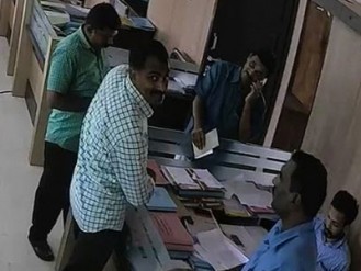 സി.സി.ടിവി ക്യാമറ കലണ്ടര് കൊണ്ട് മൂടി ജില്ലാപഞ്ചായത്ത് ഉദ്യോഗസ്ഥര് കൈക്കൂലി വാങ്ങുന്ന ദൃശ്യങ്ങള് പുറത്ത്