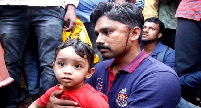 തുടര്ന്ന് സന്തോഷ് കുട്ടിയുമായി റോഡിലിരുന്നു പ്രതിഷേധിച്ചു. കൂടുതല് പൊലീസ് എത്തിയാണ് ഇയാളെ ആശുപത്രിയിലേക്ക് മാറ്റിയത്. ചെവിയ്ക്ക് മുകളിലായാണ് സന്തോഷിന് പരുക്കേറ്റത്.