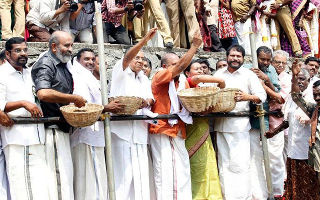 കൃഷിമന്ത്രി വി എസ് സുനില്കുമാര്,ജലവിഭവമന്ത്രി മാത്യു ടി തോമസ്, ആറന്മുള എംഎല്എ വീണാ ജോര്ജ്, മറ്റ് എംഎല്എമാര് എല്ഡിഎഫ് നേതാക്കള്, കൃഷിവകുപ്പ് ഉദ്യോഗസ്ഥര് തുടങ്ങിയവര് വിത്തിറക്കല് ചടങ്ങില് പങ്കാളികളായി. നാട്ടുകാരൊന്നാകെ ആവേശത്തോടെ വഞ്ചിപ്പാട്ട് പാടിയാണ് മുഖ്യമന്ത്രിയേയും മറ്റ് നേതാക്കളേയും പാടശേഖരത്തിലേക്ക് വരവേറ്റത്. നെല്ക്കൃഷിക്കായി 1.53 കോടി രൂപയാണ് ചെലവഴിക്കുന്നത്. ഇത് ഘട്ടങ്ങളായി സര്ക്കാര് നല്കുമെന്നും മുഖ്യമന്ത്രി പറഞ്ഞു. വിത്തുവിതറിയാണ് മുഖ്യമന്ത്രി കൃഷിയിറക്കല് പരിപാടി ഉദ്ഘാടനം ചെയ്തത്.