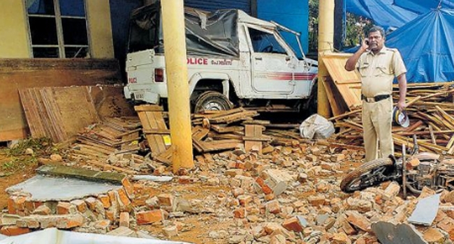 നിയന്ത്രണംവിട്ടു പാഞ്ഞ പൊലീസ് ജീപ്പ് വശത്തെ സ്വകാര്യ സ്ഥാപനത്തിന്റെ മതിലും ബോര്ഡും തകര്ത്തു വര്ക്ക്ഷോപ്പിലെ കാര്പോര്ച്ചില് കയറിനിന്നു. ഇന്നലെ രാവിലെ വിഴിഞ്ഞം-വെങ്ങാനൂര് റോഡിലുണ്ടായ സംഭവത്തില് തലനാരിഴയ്ക്കു വന് അപകടം ഒഴിവായി. വര്ക്ക്ഷോപ്പിലേക്കു വന്ന ബൈക്ക് യാത്രികന് അജീഷും ജീപ്പിലുണ്ടായിരുന്ന വിഴിഞ്ഞം സ്റ്റേഷനിലെ ഗ്രേഡ് എസ്ഐ ജയകുമാറും നിസാര പരുക്കുകളോടെ രക്ഷപ്പെട്ടു. ബ്രഹ്മോസ് കരാര് സ്ഥാപനമായ വര്ക്ക്ഷോപ്പിലെ കാര്പോര്ച്ചിലേക്കാണു ജീപ്പ് പാഞ്ഞെത്തി നിന്നത്.