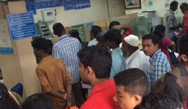 ബാങ്കുകളുടെ പ്രവര്ത്തനം തുടങ്ങി; നോട്ടുകള് മാറിയെടുക്കാനും നിക്ഷേപിക്കാനും ജനങ്ങളുടെ വന്തിരക്ക്