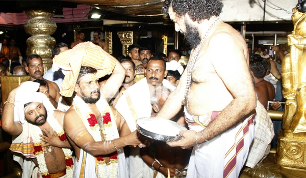 ഇവിടെ കാത്തു നിന്നിരുന്ന നിയുക്ത മേല്ശാന്തി എം. ഉണ്ണിക്കൃഷ്ണന് നമ്പൂതിരിയെ നിലവിലുള്ള മേല്ശാന്തി കൈപിടിച്ച് പതിനെട്ടാംപടികയറ്റി. ഒപ്പം നിയുക്ത മാളികപ്പുറം മേല്ശാന്തി മനു നമ്പൂതിരിയും പടി ചവിട്ടി. ഇരുവരും അയ്യപ്പ ദര്ശനംനടത്തിയതിന് ശേഷം രാത്രി ഏഴിന് പുതിയ മേല്ശാന്തിയുടെ അവരോധന ചടങ്ങ് നടന്നു. സോപാനത്ത് പത്മം വരച്ച് കലശം പൂജിച്ച ശേഷം നിയുക്ത മേല്ശാന്തിയെ അഭിഷേകം ചെയ്തു.