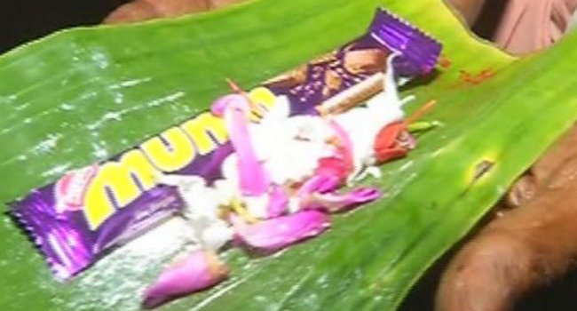ഇഷ്ടദൈവത്തിനായി ഭക്തര് നല്കുന്ന വഴിപാട് നെസ്ലെ മഞ്ച്