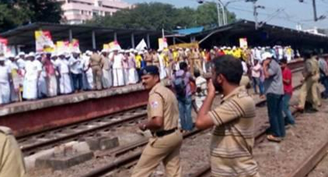 പി സി ജോര്ജിന്റെ ട്രെയിന് തടയല് സമരം എറണാകുളം നോര്ത്ത് റെയില്വേ സ്റ്റേഷനില് തുടങ്ങി