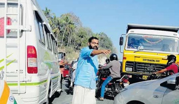നിര്മ്മാണം പുരോഗമിക്കുന്ന ബൈപാസില് മന്ത്രി ഇറങ്ങി മുക്കാല് മണിക്കൂറോളം ട്രാഫിക് നിയന്ത്രിച്ചു