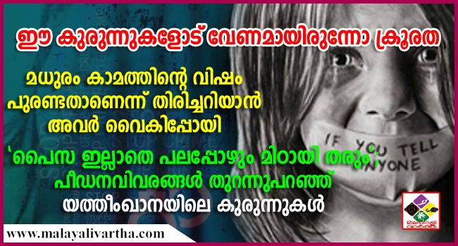 ഈ കുരുന്നുകളോടുവേണമായിരുന്നോ ക്രൂരത; മധുരം കാമത്തിന്റെ വിഷം പുരണ്ടതാണെന്ന് തിരിച്ചറിയാന് അവര് വൈകിപ്പോയി, പീഡനവിവരങ്ങള് തുറന്നുപറഞ്ഞ് യത്തീംഖാനയിലെ കുരുന്നുകള്