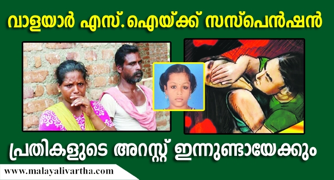 വാളയാര് എസ്.ഐയ്ക്ക് സസ്പെന്ഷന് വാളയാര്; രണ്ടു പേരുടെ അറസ്റ്റ് ഇന്നുണ്ടായേക്കും