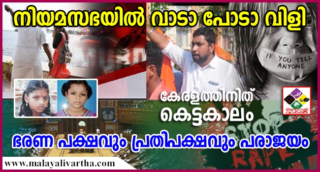 നരാധമന്മാരുടെ മൃഗീയ ക്രൂരതകളില് കേരളം കേഴുമ്പോള്, പോലീസ് നിഷ്ക്രിയമാകുമ്പോള്, ആഭ്യന്തര മന്ത്രി നിര്ജ്ജീവമാകുമ്പോള് പ്രതിപക്ഷവും പരാജയമാകുന്നു. നിയമസഭയിലെ വാടാപോടാ വിളിയല്ല സമൂഹത്തില് ഫലപ്രദമായ ഇടപെടലുകളാണ് ജനങ്ങളാഗ്രഹിക്കുന്നത്. പോലീസ് ശവം പോലെയായി എന്ന് പറയുന്നതാണ് ശരി. പ്രതിപക്ഷ നേതാവിനെ ഈ പീഡന പരമ്പരകളില് നോക്കു കുത്തിയാകാനേ കഴിയുന്നുള്ളൂ. സജീവമായ ഇടപെടലുകളോ സമര പരിപാടികളോ ഇല്ല, ജനാധിപത്യം എല്ലാ അര്ത്ഥത്തിലും നിര്ജ്ജീവമാകുന്നു. ജനങ്ങള് പരിഭ്രാന്തിയിലും. സ്ത്രീ സുരക്ഷ നല്കാനാകാത്ത കുഞ്ഞുങ്ങളെ സംരക്ഷിക്കാനാകാത്ത, വ്യക്തി സ്വാതന്ത്ര്യങ്ങളെ പത്തലുകൊണ്ടടിച്ചോടിക്കുന്നവരെ നിയന്ത്രിക്കാനാവാതെ ആഭ്യന്തര വകുപ്പ് പരാജയമാകുന്നു. പ്രതിപക്ഷവും പ്രതിപക്ഷമേതാവും ഏറ്റവും പരിതാപകരമായ അവസ്ഥയിലും.