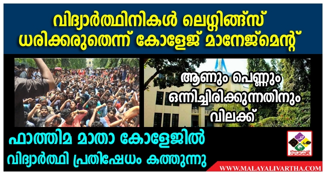 ആണും പെണ്ണും ഒന്നിച്ചിരിക്കുന്നതിന് വിലക്ക്; കൊല്ലം ഫാത്തിമ മാതാ കോളേജില് വിദ്യാര്ത്ഥി പ്രതിഷേധം കത്തുന്നു