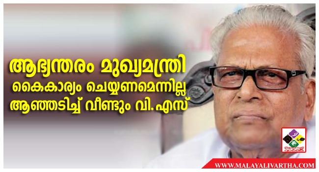 മുഖ്യമന്ത്രി പിണറായി വിജയന് ആഭ്യന്തര വകുപ്പ് കൈകാര്യം ചെയ്യണമെന്ന കാര്യത്തില് നിര്ബന്ധമില്ലെന്നും വി.എസ് പറഞ്ഞു. പോലീസിന്റെ വീഴ്ചകള് പലതവണ താന് ചൂണ്ടിക്കാട്ടിയിട്ടുണ്ടെന്നും സര്ക്കാരിന് രാഷ്ട്രീയ ഇച്ഛാശക്തയോടെ പോലീസിനു മേല് നിയന്ത്രണം കൊണ്ടുവരാന് കഴിയണമെന്നും വി.എസ് വ്യക്തമാക്കി.
