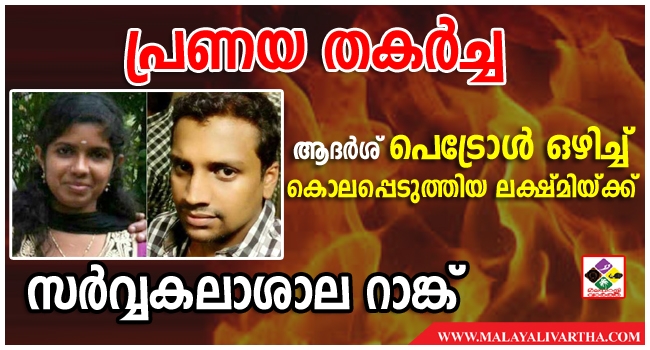 മുന് കാമുകന് പെട്രോളൊഴിച്ച്കൊന്ന ലക്ഷ്മിയ്ക്ക് സര്വ്വകലാശാല റാങ്ക്