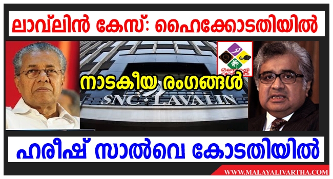 ലാവലിന് കേസില് മുഖ്യമന്ത്രി പിണറായി വിജയനുവേണ്ടി രാജ്യത്തെ പ്രമുഖ അഭിഭാഷകനായ ഹരീഷ് സാല്വെ ഇന്ന് ഹൈക്കോടതിയില് ഹാജരാകും .സിബിഐ സമര്പ്പിച്ച റിവിഷന് ഹര്ജി ഇന്ന് രാവിലെ 11 മണിക്കാണ് ഹൈക്കോടതി പരിഗണിക്കുന്നത്. പിണറായി വിജയനും ഹരീഷ് സാല്വെയും ഇന്നലെ രാത്രി കൊച്ചിയിലെ ടാജ് വിവാന്റയില് കൂടിക്കാഴ്ച നടത്തിയിരുന്നു.