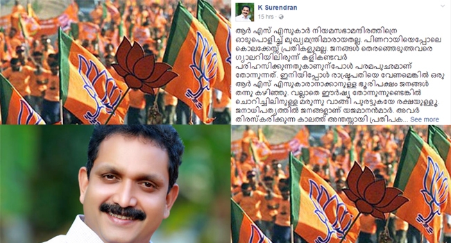 ആര്.എസ്.എസിന്റെ ഉയര്ച്ചയില് അഹങ്കാരത്തോടെ കെ. സുരേന്ദ്രന്