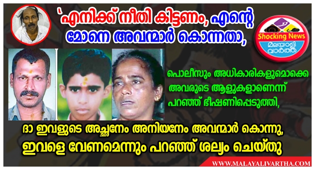 'എനിക്ക് നീതി കിട്ടണം, ന്റെ മോനെ അവന്മാര് കൊന്നതാ, പൊലീസും അധികാരികളുമൊക്കെ അവരു ടെ ആളുകളാണെന്ന് പറഞ്ഞ് ഭീഷണിപ്പെടുത്തി, ദാ ഇവളുടെ അച്ഛനേം അനിയനേം അവന്മാര് കൊന്നു, ഇവളെ വേണമെന്നും പറഞ്ഞ് ശല്യം ചെയ്തു. പതലവണ. സഹികെട്ടാണ് അവിടുന്ന് താമസം മാറി ഇവിടെ എത്തിയത്'- കേരളപുരത്തെ വീട്ടിലിരുന്നു കൊണ്ട് സുവര്ണ്ണ(50)പറഞ്ഞു. നാന്തിരിക്കല് പീഡനക്കേസിലെ വിക്ടര് ഡാനിയേലിന്റെ അയല്വാസികളായിരുന്നു സുവര്ണ്ണയും കുടുംബവും. ഭര്ത്താവ് രവിയും രണ്ട് മക്കളുമൊത്താണ് വിക്ടറിന്റെ വീടിന് സമീപത്ത് ഇവര് മൂന്ന് സെന്റ്സ്ഥലം വാങ്ങി താമസം തുടങ്ങിയത്. കടബാദ്ധ്യതകള് കുറച്ചുണ്ടായിരുന്നു. വിക്ടറിന്റെ ഭാര്യ ലത പലപ്പോഴും സുവര്ണ്ണയോടും മകളോടും തന്റെ കൂടെ വന്നാല് പണം ലഭിക്കാനുള്ള വഴിയൊരുക്കിത്തരാമെന്ന് പറഞ്ഞിരുന്നുവത്രെ.