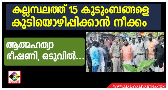 കുടുംബങ്ങളെ കുടിയൊഴിപ്പിക്കാന് നീക്കം; ഉദ്യോഗസ്ഥരെ മുള്മുനയില് നിര്ത്തി ആത്മഹത്യാ ഭീഷണി
