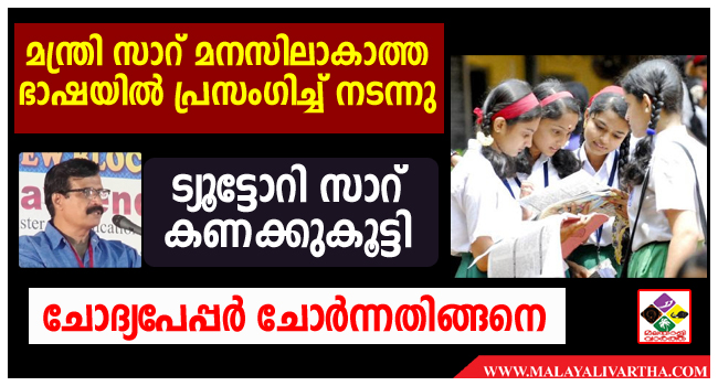 മനസിലാകാത്ത ഭാഷയില് ഓരോ പ്രസംഗ വേദിയിലും ക്ലാസെടുത്തു നടക്കുന്ന മന്ത്രി സാറിന്റെ കണക്കുകൂട്ടല് പിഴച്ചു. മന്ത്രിയുടെ തോളിലിരുന്ന് ചെവി കടിച്ചു എന്ന് പറഞ്ഞാല് മതി. ചോദ്യക്കടലാസ് തയാറാക്കിയ വ്യക്തിതന്നെ എസ്.എസ്.എല്.സി. പരീക്ഷയുടെ ചോദ്യം ചോര്ത്തുന്നത് ചരിത്രത്തിലാദ്യം.