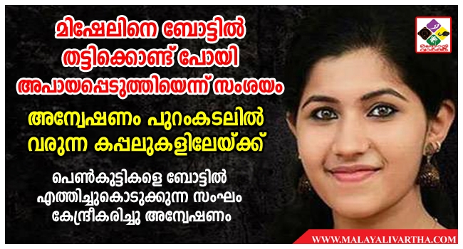 മിഷേലിനെ ബോട്ടില് കടത്തിക്കൊണ്ടു പോയെന്നു സംശയം