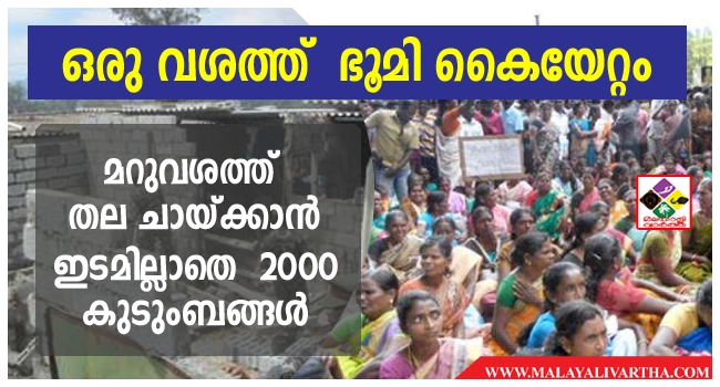 കൈയേറ്റക്കാര് ഭൂമി കവര്ന്നു; മൂന്നാറില് പാര്പ്പിടമില്ലാതെ 2000 കുടുംബങ്ങള്