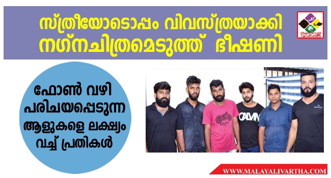 സ്ത്രീക്കൊപ്പം നഗ്നചിത്രമെടുത്ത്ഭീഷണിപ്പെടുത്തി പണം തട്ടുന്ന സ്ത്രീയടക്കമുള്ള ഏഴംഗ സംഘം അറസ്റ്റില്