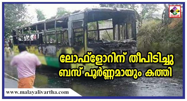 ഓടിക്കൊണ്ടിരുന്ന ലോഫ്ലോറിന് തീപിടിച്ചു; ബസ് പൂര്ണ്ണമായും കത്തി നശിച്ചു
