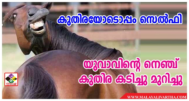 കുതിരയോടൊപ്പം സെല്ഫിയെടുക്കാന് ശ്രമിച്ച യുവാവിനെ കുതിര കടിച്ചു മുറിച്ചതിനെ തുടര്ന്ന് ആശുപത്രിയില് പ്രവേശിപ്പിച്ചു. താഴെചൊവ്വ സ്വദേശി പൂത്തട്ട വീട്ടില് സജിത്തി (37) നെയാണ് കുതിര കടിച്ചത്.