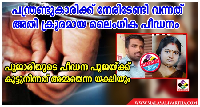 സംഭവത്തില് അസ്വാഭാവിക മരണത്തിന് പൊലീസ് കേസെടുത്തിരുന്നെങ്കിലും പോസ്റ്റ്മോര്ട്ടത്തിലാണ് കുട്ടി ലൈംഗിക പീഡനത്തിന് ഇരയായിരുന്നതായി കണ്ടെത്തിയത്. മരിച്ച പന്ത്രണ്ടുവയസുകാരി പ്രകൃതിവിരുദ്ധ ലൈംഗിക പീഡനത്തിന് ഇരയായിട്ടുണ്ടെന്ന് പോസ്റ്റുമോര്ട്ടം ചെയ്ത ഡോക്ടറുടെ മൊഴി നല്കി. കുട്ടി നിരന്തരമായി പ്രകൃതിവിരുദ്ധ പീഡനത്തിന് ഇരയായിട്ടുണ്ടെന്നാണ് തിരുവനന്തപുരം മെഡിക്കല് കോളജിലെ ഡോക്ടറുടെ മൊഴി. അയല്വാസി കൂടിയായ പൂജാരിക്ക് സ്വന്തം മകളെ പീഡിപ്പിക്കാന് അമ്മ സമ്മതം മൂളിയിരുന്നുവെന്നാണ് അന്വേഷണത്തില് വ്യക്തമായത്.