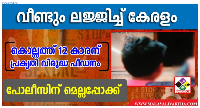 കൊല്ലത്തു നിന്നും ക്രൂര പീഡനങ്ങള് തുടര്ക്കഥയാകുന്നു. പതിവുപോലെ പൊലീസ് വിഷയത്തില് ഇരുട്ടില്ത്തപ്പുകയാണ്. ബാലനെ നീലച്ചിത്രം കാണിച്ച് പല തവണ ക്രൂരമായി പ്രകൃതിവിരുദ്ധമായി പീഡിപ്പിച്ചെന്നാണ് അമ്മയുടെ പരാതി. അതേ പോലെ സഹോദരിയെ പീഡിപ്പിക്കാനും അയല്വാസിയായ യുവാവ് പ്രേരിപ്പിച്ചെന്നാണ് കുട്ടി പറയുന്നത്. ഇയാള് വിവാഹിതനാണ്. സംഭവം ആരോടെങ്കിലും പറഞ്ഞാല് കൊല്ലുമെന്ന് കുട്ടിയെ ഭീഷണിപ്പെടുത്തിയതായും പരാതിയില് പറയുന്നു. ക്രൂരപീഡനമാണ് നടന്നതെന്നാണ് മെഡിക്കല് റിപ്പോര്ട്ട്. പീഡനത്തില് മനോനില തകര്ന്ന കുട്ടി ഇപ്പോള് ചിക്തസയിലാണ്.