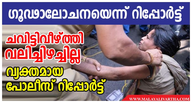 പൊലീസ് ആസ്ഥാനത്തെ സമരം ഗൂഢാലോചനയെന്ന് റിപ്പോര്ട്ടുമായി റേഞ്ച് ഐജി മനോജ് ഏബ്രഹാമിന്റെ റിപ്പോര്ട്ട്. മകന് ജിഷ്ണു പ്രണോയിയുടെ മരണത്തിന് ഉത്തരവാദികളായവരെ അറസ്റ്റ് ചെയ്യണമെന്ന ആവശ്യവുമായി എത്തിയ മഹിജയെ ഡിജിപി ഓഫിസിനു മുന്നില് പൊലീസ് ചവിട്ടിവീഴ്ത്തി വലിച്ചിഴച്ചെന്ന ആരോപണം തള്ളി റിപ്പോര്ട്ട് ചെയ്ത് പോലീസ്.