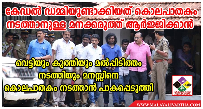 അവശേഷിക്കുന്ന ചോദ്യം എന്തിന് കൊലപാതകം നടത്തി എന്നതാണ്. ഇതിനു സമാനമായ ഒരു കേസ് കഴിഞ്ഞ വര്ഷം മേയില് ചെങ്ങന്നൂരില് നടന്ന കൊലപാതകമാണ്. അമേരിക്കന് മലയാളിയായ സമ്പന്നനായ പിതാവ് ജോയിയെ മകന് ഷെറിന് കാറില്വച്ചു വെടിവച്ചു കൊന്നശേഷം അവരുടെ തന്നെ ഉടമസ്ഥതയിലുള്ള ഗോഡൗണില് എത്തിച്ച് മൂന്നായി വെട്ടി നുറുക്കി. ഓരോ ഭാഗവും കോട്ടയം, പത്തനംതിട്ട, ആലപ്പുഴ ജില്ലകളിലെ ആറ്റിലും കായലിലും കൊണ്ടു തള്ളുകയായിരുന്നു. പണം ധൂര്ത്തടിച്ച മകനെ പിതാവ് അകറ്റി നിറുത്തിയതാണ് പകയായി മാറി കൊലപാതകത്തിലെത്തിച്ചത്.